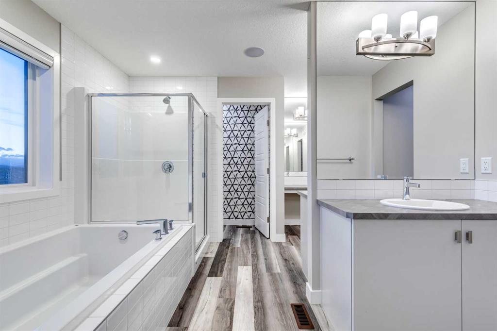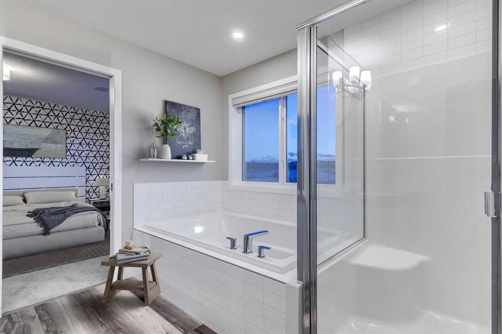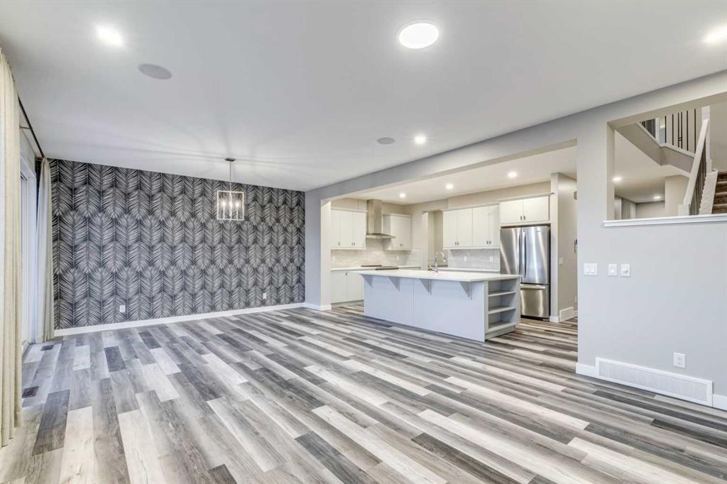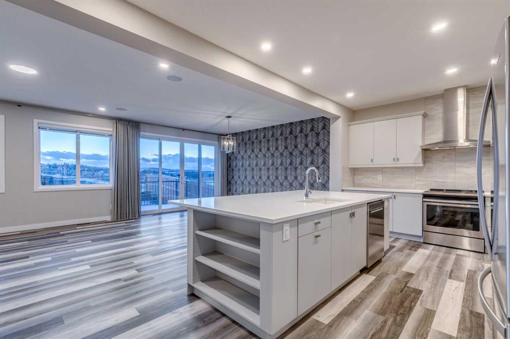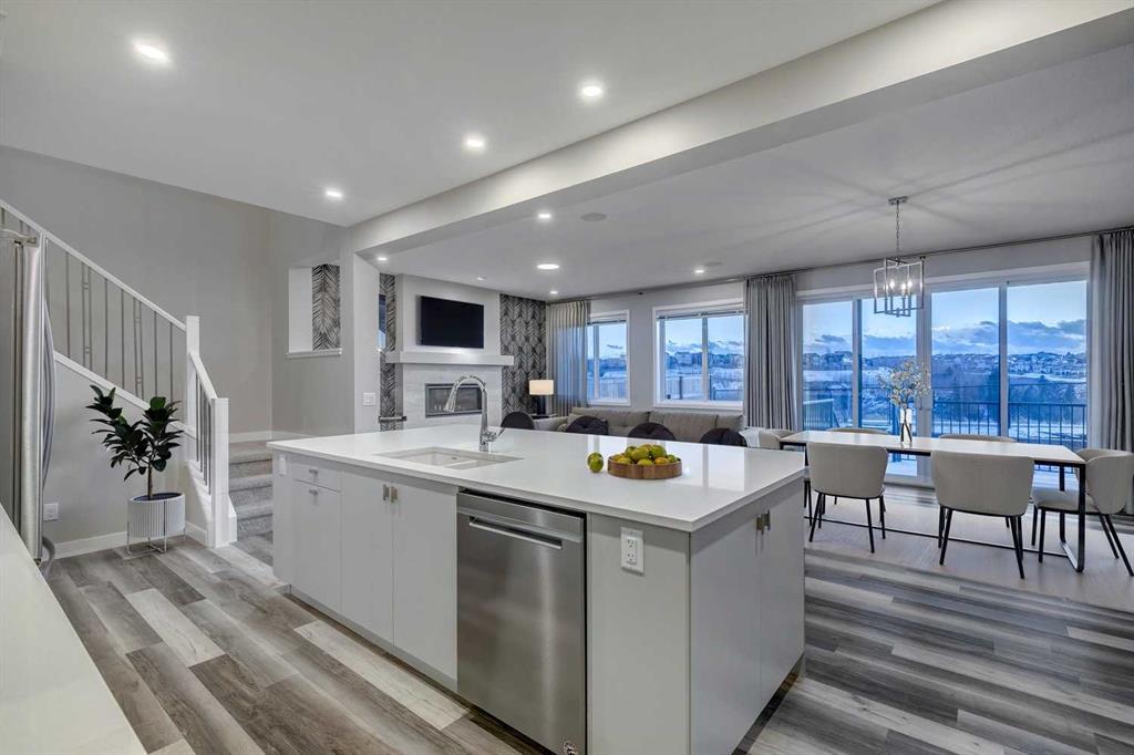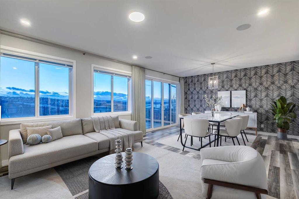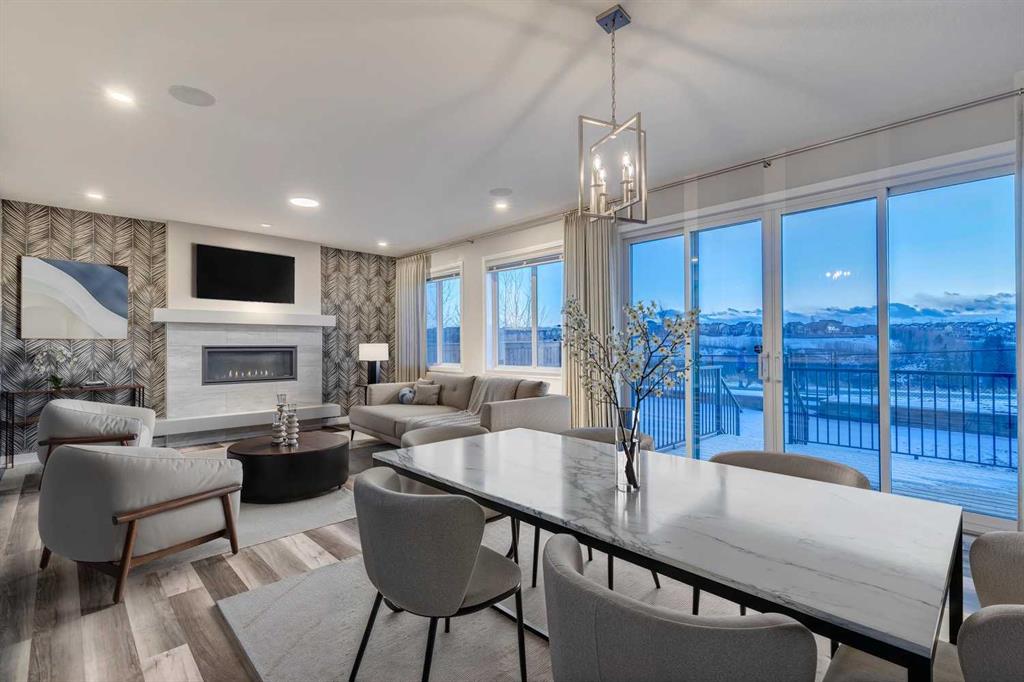 Set against a stunning natural backdrop in the desirable community of Precedence, this former show home offers refined design, impressive upgrades, and captivating river and mountain views. Thoughtfully designed for both entertaining and everyday living, the home showcases a seamless blend of modern comfort and elevated style. The main floor welcomes you with luxury vinyl plank flooring and expansive windows that fill the home with natural light. Just off the entrance, a private office with a striking slatted feature wall creates an inspiring workspace for those working from home. The open-concept layout then unfolds into the heart of the home – a beautifully appointed kitchen designed to impress. Featuring quartz countertops, a large island with built-in shelving, a dedicated coffee bar, and stainless steel appliances, including a smooth cooktop, built-in microwave, and French-door refrigerator with ice maker, this space effortlessly balances function and style. The adjoining living area offers a warm and inviting atmosphere, anchored by a gas fireplace set within a statement feature wall and enhanced by built-in speakers, making it ideal for entertaining or relaxing evenings at home. Upstairs, a spacious bonus room provides additional living space perfect for movie nights or family gatherings. The upper level also features three well-appointed bedrooms, including a luxurious primary retreat designed to take full advantage of the spectacular views. This serene space includes a custom built-in headboard feature, along with a spa-inspired ensuite complete with dual vanities, two walk-in closets, a deep soaker tub, and a glass stand-alone shower. A bright upstairs laundry room with counter space and large windows, along with a five-piece main bathroom with dual sinks, adds everyday convenience. Designed with modern living in mind, the home is fully equipped as a smart home integrated with Alexa and includes an impressive list of upgrades such as dual furnaces, two air conditioning units, solar panels, hot water on demand, smart Wi-Fi light switches, and an EV charger. Backing onto a beautiful natural landscape with direct access to scenic pathways, this property offers the rare opportunity to enjoy peaceful surroundings while taking in sweeping river and mountain views. Combining thoughtful design, premium upgrades, and an exceptional setting, this remarkable home delivers the best of luxury living in one of the area’s most exciting growing communities.