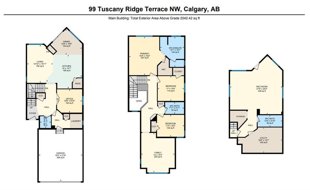 Welcome to Tuscany! This well-located home offers a rare opportunity to own in one of NW Calgary’s most sought-after communities. This home enjoys peaceful mountain views backing onto greenspace, with no neighbours behind you. Step inside to a large, welcoming foyer that leads to a den with French doors, perfect for a home office or quiet retreat, a powder room and main-floor laundry area. As you walk to the main living areas, you’ll notice bright, natural light, creating a warm atmosphere throughout the space. The kitchen has a large island perfect for entertaining and opens up to the dining and living areas, where a triple-sided gas fireplace adds warmth and ambiance while maintaining an open and airy feel. Head out onto the balcony with a gas line hookup, ideal for BBQ’s, and simply relax and take in the mountain views and evening sunsets. Upstairs, the spacious primary suite is a true retreat, featuring a walk-in closet, and a large ensuite with separate shower and soaker tub. Walk down the hall to two additional bedrooms, full bathroom, and step down into the large bonus room, providing the perfect space for a family media room, play area or additional living space. The walk-out basement features a bathroom and a large recreation room, providing versatile space for entertaining, a home gym or guest accommodations. Step outside to the west-facing backyard, perfect for outdoor gatherings and letting the kids or dog run around. The community of Tuscany is known for its extensive pathway system, parks, playgrounds, schools, shopping and access to the private Tuscany Club, which offers year-round amenities, including a gymnasium, splash park, skating rink, tennis courts, playground and year-round programming. Commuters will appreciate easy access to Stoney Trail, Crowchild Trail and Trans-Canada, making weekend getaways to the mountains quick and convenient! Outdoor enthusiasts will love being minutes from Lynx Ridge Golf Course, Bearspaw Golf Club and the surrounding natural areas. Offered as an estate sale and sold as-is, this property presents an excellent opportunity for buyers looking to add value in a prime location with incredible views and community amenities! Visit this home and take in the views, space and the community of Tuscany for yourself!