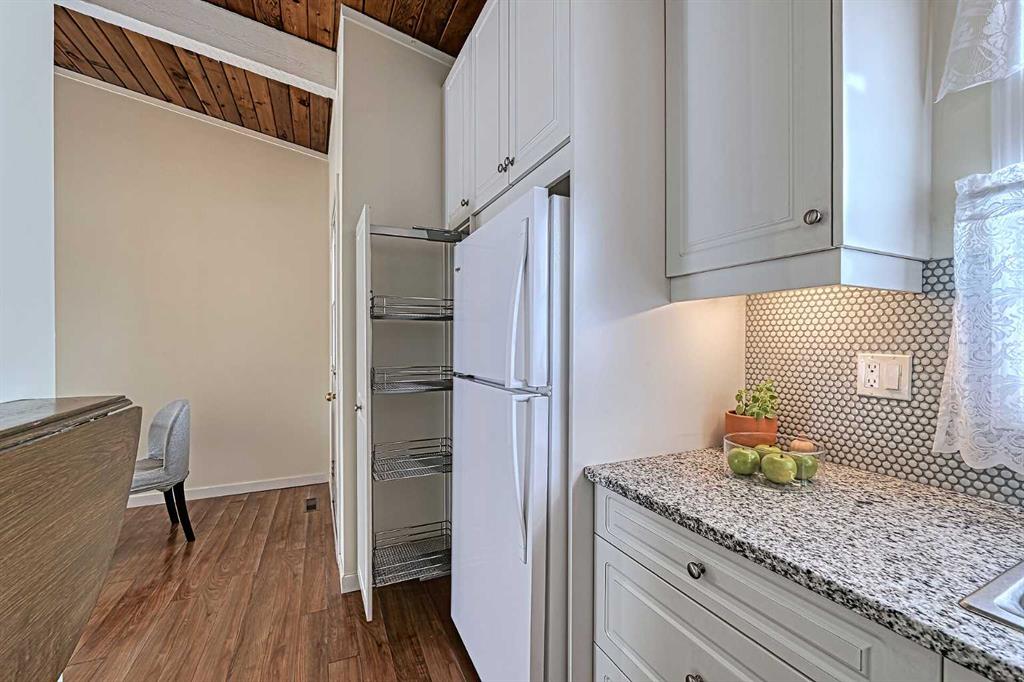 Over 850 square feet of developed living space! Welcome to this beautifully renovated home nestled in the highly sought-after, family-friendly community of Oakridge. Offering the perfect blend of modern upgrades and timeless charm, this move-in-ready home is an exceptional opportunity for first-time buyers, downsizers, or investors alike. From the moment you step inside, you’ll be captivated by the stunning vaulted open-beam cedar ceilings that create a warm, airy, and inviting atmosphere throughout the main living space. Large windows flood the home with natural light, enhancing the open-concept design and highlighting the thoughtful updates found in every corner. The spacious living room is centered around a cozy electric fireplace, making it the perfect place to relax or entertain year-round. The brand new kitchen is both stylish and functional, featuring new tile back splash, modern cabinetry, and updated finishes that elevate the space. A brand new electric stove is included, making this kitchen ready for everyday living and hosting alike. The adjoining dining area flows seamlessly to the outdoor space, providing easy access for summer BBQs and gatherings. This well-designed bi-level layout offers excellent separation between living and resting areas because downstairs, you’ll find two generously sized bedrooms, both complete with large windows that create bright and comfortable retreats. Brand new carpet adds warmth and comfort, while the thoughtful layout provides privacy and functionality. The home features a beautifully appointed bathroom with new bathtub, sparkling white tile surround and marble topped vanity. Additional upgrades include new lighting throughout, fresh paint, and a high-efficiency furnace, offering both peace of mind and energy efficiency. The lower level also includes a convenient laundry area and ample storage space. Step outside onto your private deck and down to your fully fenced backyard—an ideal space for relaxing evenings, entertaining guests, or letting pets and children play safely. The deck and yard provide a perfect extension of your living space during the warmer months. A dedicated, assigned parking stall is conveniently located just steps away, with additional street parking available for visitors. Location is everything, and this home delivers. Situated in the established community of Oakridge, you’ll enjoy close proximity to top-rated schools, parks, shopping, transit, and everyday amenities. Nature lovers will appreciate easy access to nearby green spaces, pathways, Glenmore Reservoir and Weaselhead Natural Area offering hiking, biking and boating, while commuters benefit from quick connections to major roadways. With its unique character, modern updates, and unbeatable location, this home stands out from the rest. You can stop renting, invest, or simply find a place that feels like home, this property offers incredible value and lifestyle. Don’t miss your opportunity—schedule your private showing !!