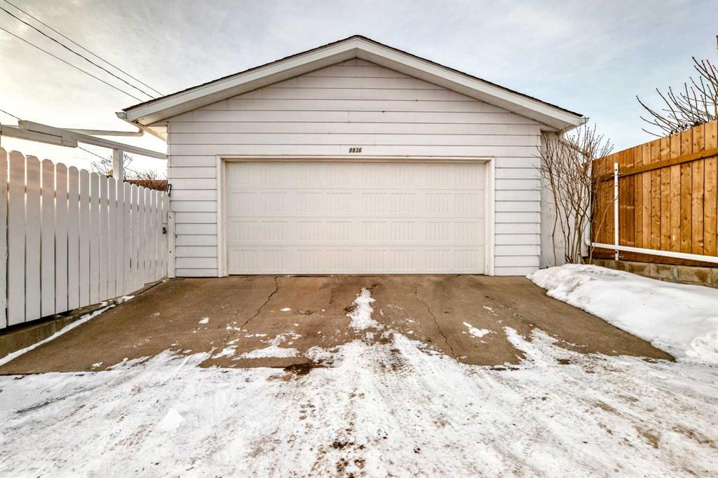 The OVERSIZED Double detached garage (23.6 x 21.4 ft) is heated, insulated, ventilated, and with 220V power and comes with 9-ft ceilings, NEW Garage door + opener and 3 remotes!—ideal for mechanics, trades, woodworking shop with extra RV parking beside it. The back alley is paved and there is a good blend of concrete patio space for BBQing and entertaining with a beautifully landscaped yard with fruit trees and garden.