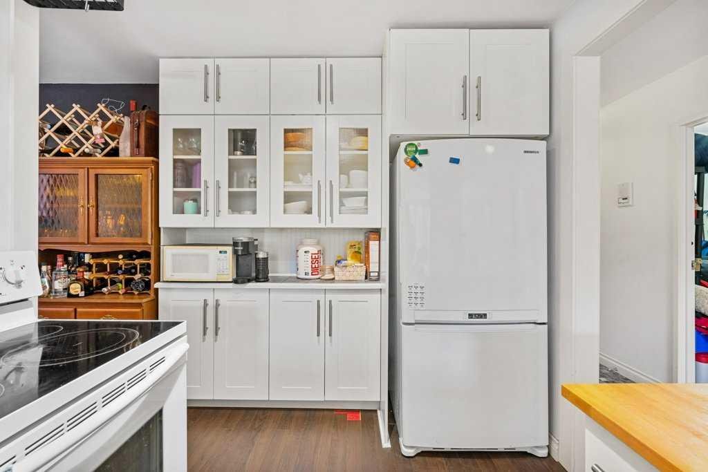 The living room exudes warmth and charm with its gleaming hardwood floors and a soothing wood-burning fireplace. The huge primary bedroom serves as a retreat, boasting a remodeled, luxurious 4pc ensuite complete with subway tile and a spacious walk-in closet.