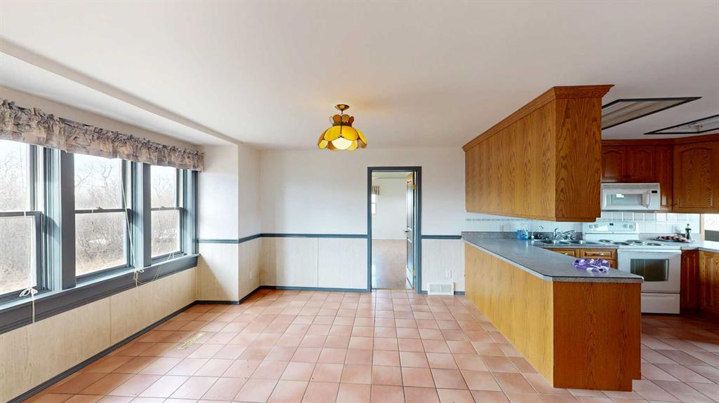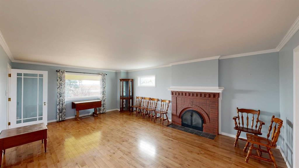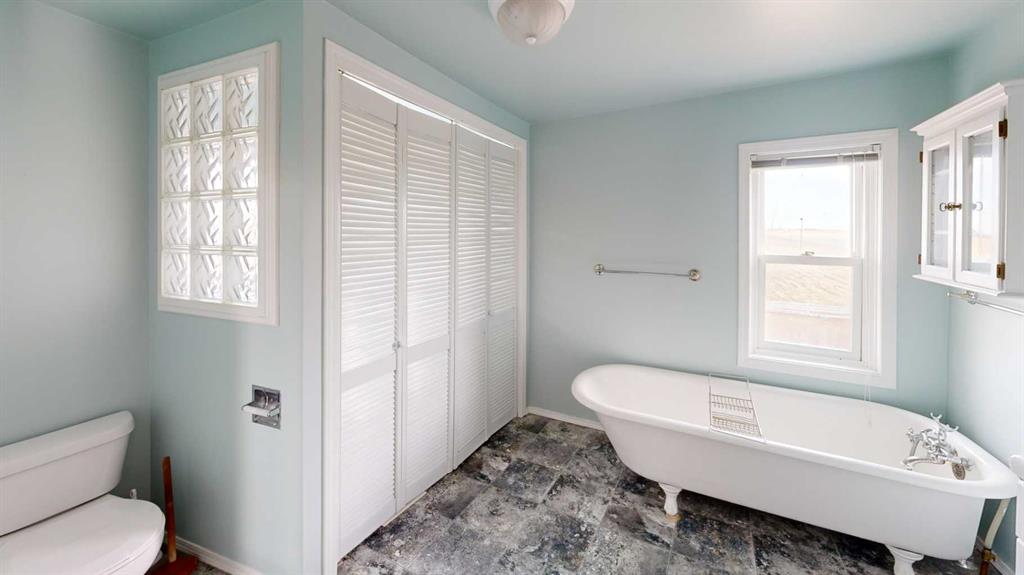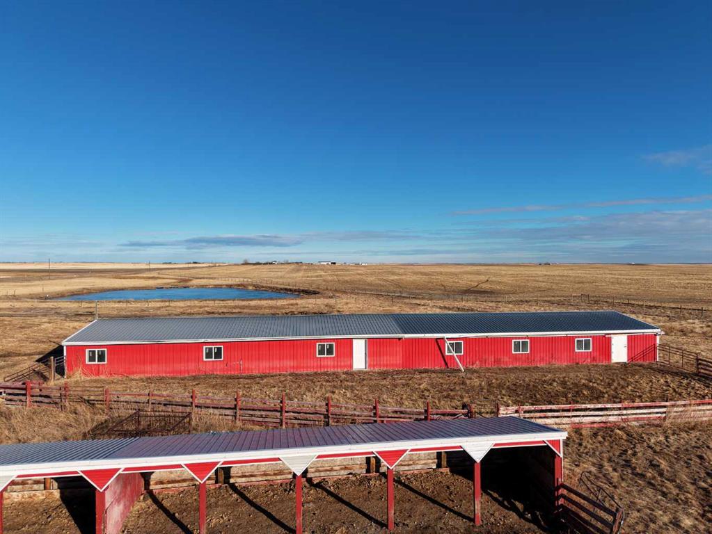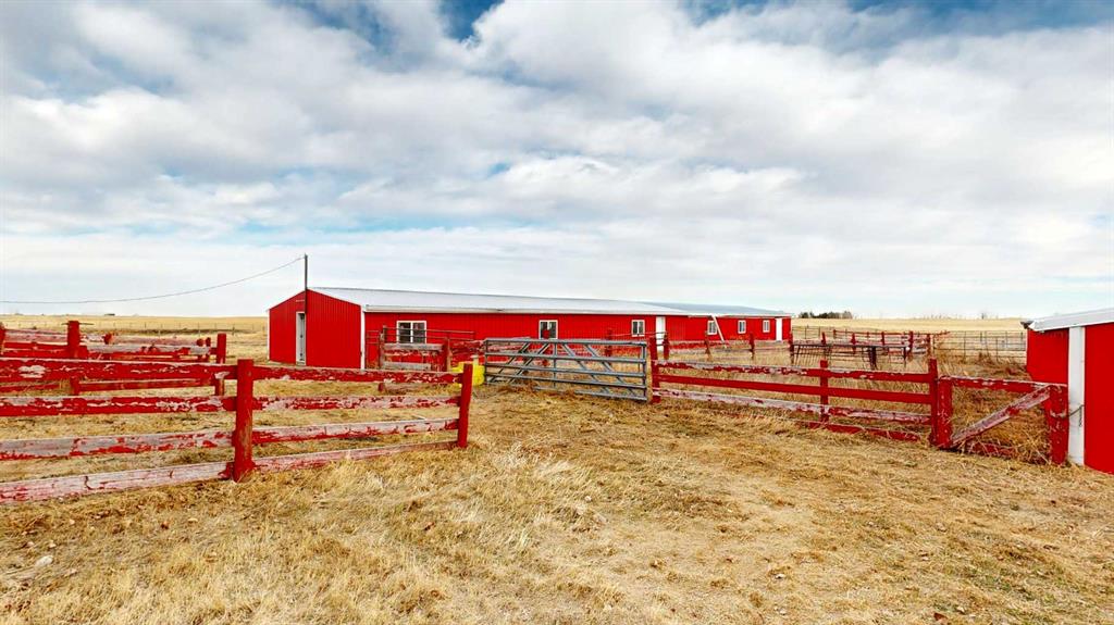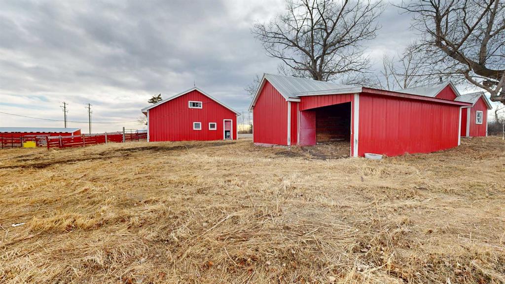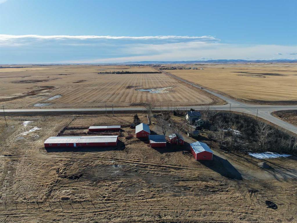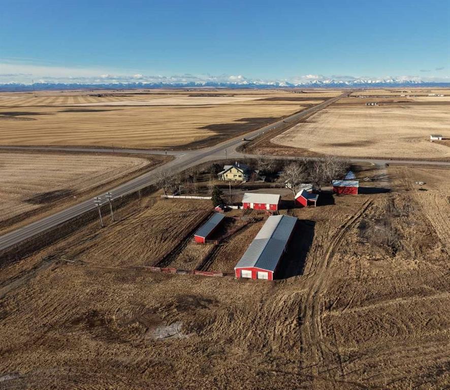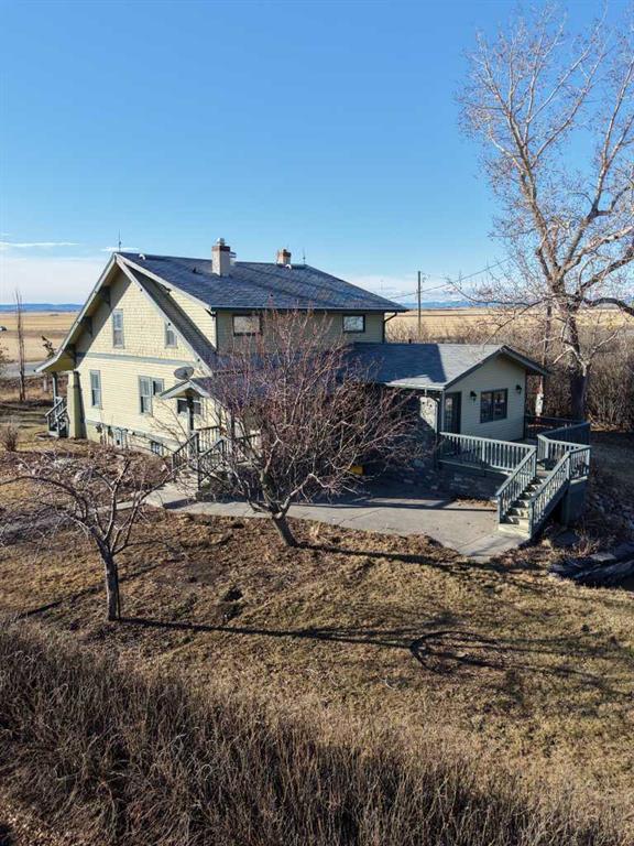 Built in 1910, this charming two-story farmhouse sits on 4.94 acres with easy paved access, blending timeless character with thoughtful updates. A welcoming covered front verandah and spacious back deck overlook a mature yard complete with shelterbelt, established trees, patio area, and a picturesque pond feature. The main-floor primary bedroom is a later addition, offering a private ensuite bath and direct access to the deck. Inside, the home features five bedrooms in total, two laundry areas (main floor and upper level), a cozy breakfast nook, and both formal and casual dining spaces. Crown molding, French doors, and a wood-burning fireplace add warmth and elegance, with French door access into the inviting living room. The fully perimeter-fenced property includes new fencing and an impressive array of outbuildings—garages, workshops, barns, and corrals—ideal for hobby farming or country living. An amazing farmhouse setting with convenience in mind, located just 10 minutes from High River.