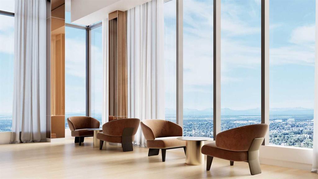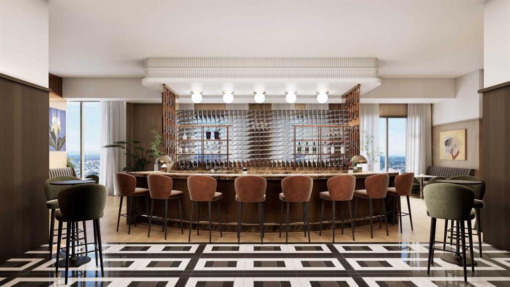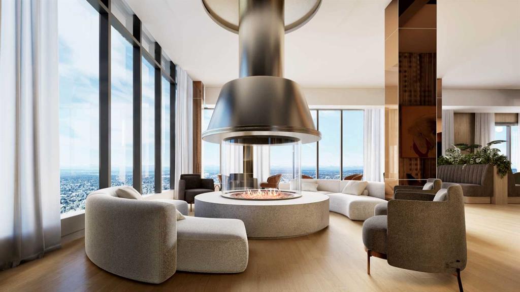 A true highlight of the development is the Level 46 Fireside Sky Lounge—an exclusive retreat featuring a bar, indoor fireplace, and private dining areas, all set against breathtaking panoramic views of downtown Calgary and the Rocky Mountains.